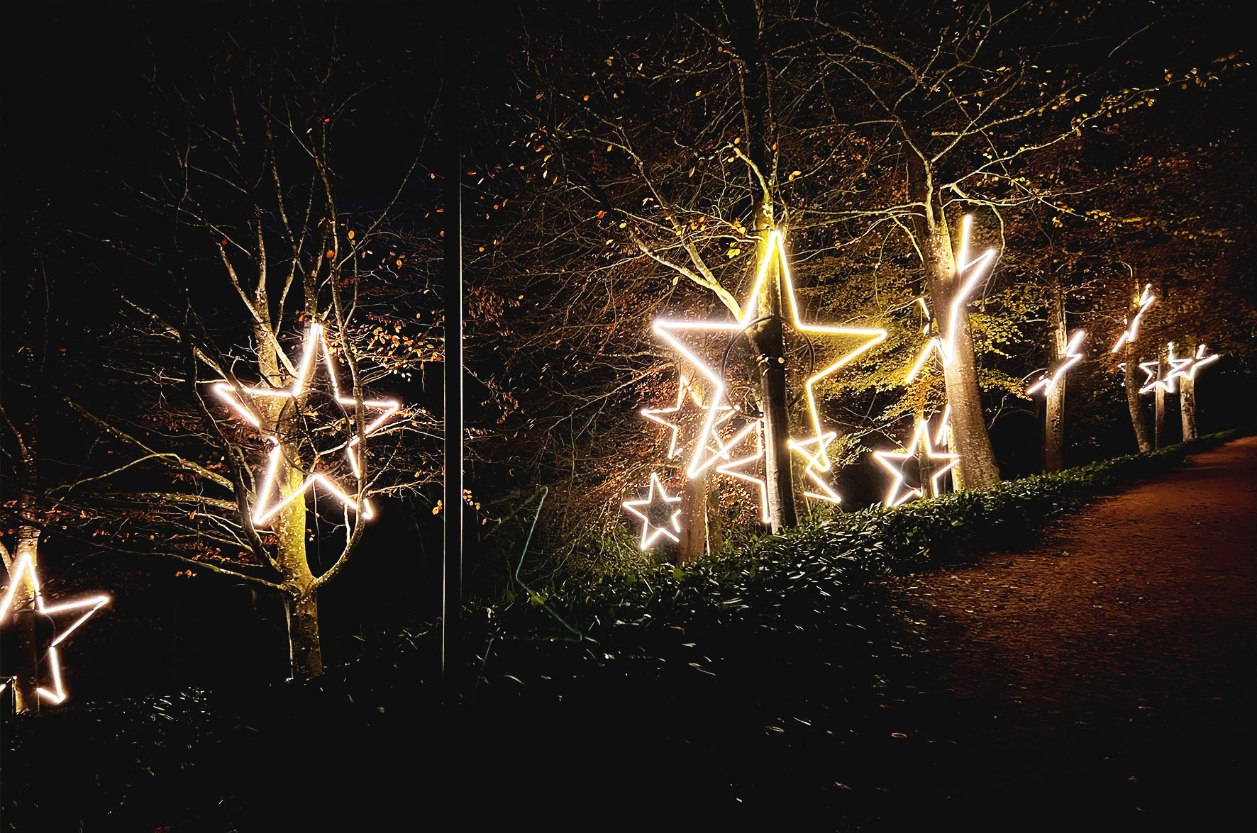 We are happy to talk to anybody about their ideas and help make them happen, whether its for christmas light in a big tree in your garden, wedding lighting, lighting trails or full festival installs we have you covered.