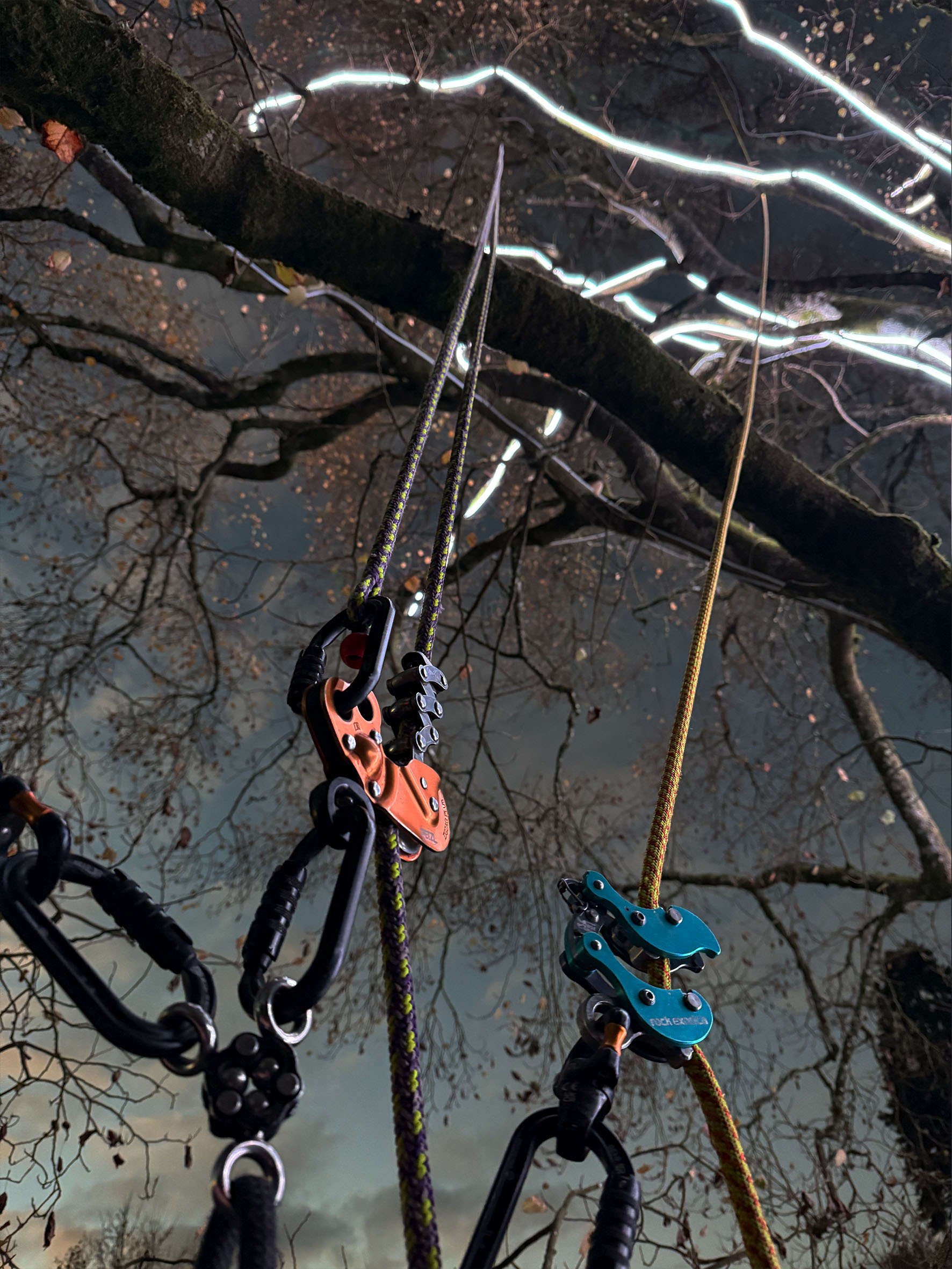 The environment and ecology associated with trees are an important consideration for us, we are always trying to progress and take steps to minimise the impact of our work. We have drastically reduced our consumption of single-use plastics with our custom ‘tree ties’ that are totally robust and reusable for permanent installations. We like to use ‘bug-friendly’ lighting – warm-toned LEDs that reduce attraction to nocturnal insects, cut light pollution, and help protect local ecosystems.